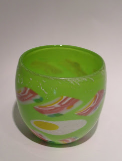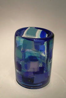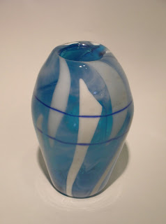 Kilncast glass got the blown glass treatment in the roll-up class this past weekend. The class explored the innovative glass working method often referred to as “the Australian Roll-Up” – a technique that allows the artist to blow 3-dimensional forms without the necessity of a furnace and allows for an extended time for focused design of the patterning, as compared to the faster pace required for traditional hot glass.