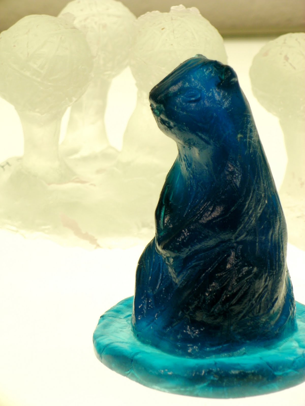 Using her mind’s eye memory of Punxsutawney Phil, the groundhog in blue is a timely and striking piece.