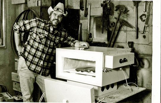 Ray Ahlgren removes a cast glass panel from the kiln.
