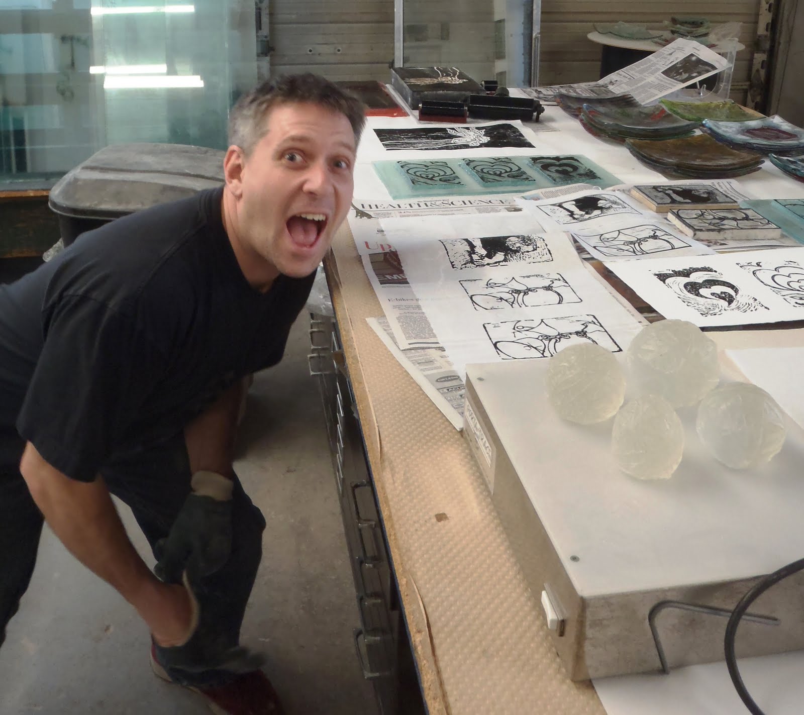 Kirk Waldroff’s printmaking with glass class is one of the stronger design class of the year, with a number of students taking off in creative directions.