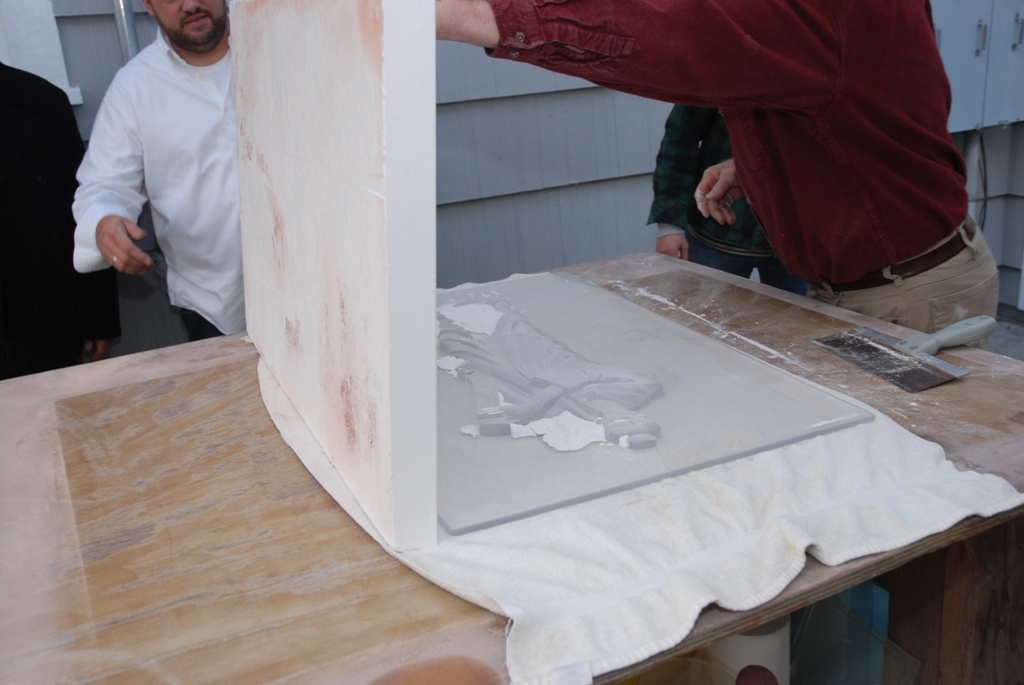 Sean Hennessey, the master caster, sets up his mold making equipment and preps the doors.