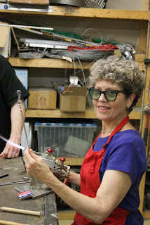 Discussing one last piece. “Catch and Release“. The lock is cast glass and was purchased in Tel Aviv on a trip to teach in Jerusalem. At the time it felt like an ancient relic that we had found in an old mud hut and bought from a man that was nearing the end of a long and nonmonetary rich life. The fence referenced a fence that ran along the walkway to a bridge in Seattle that we would use when boarding/unboarding the ferry. The fence itself is created by hand using a torch and then assembled cold and held tight in a frame like a puzzle.