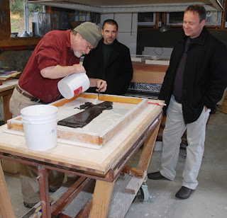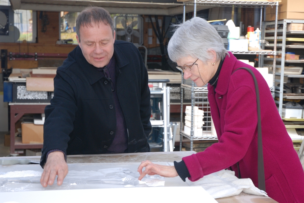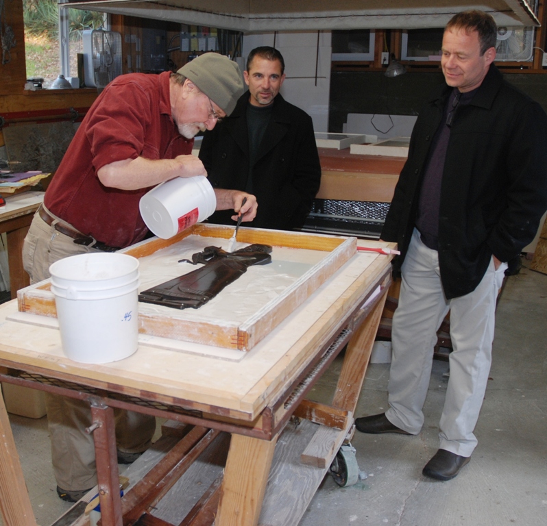 Ray Ahlgren details the plaster across the wax as Erwin Timmers looks on.