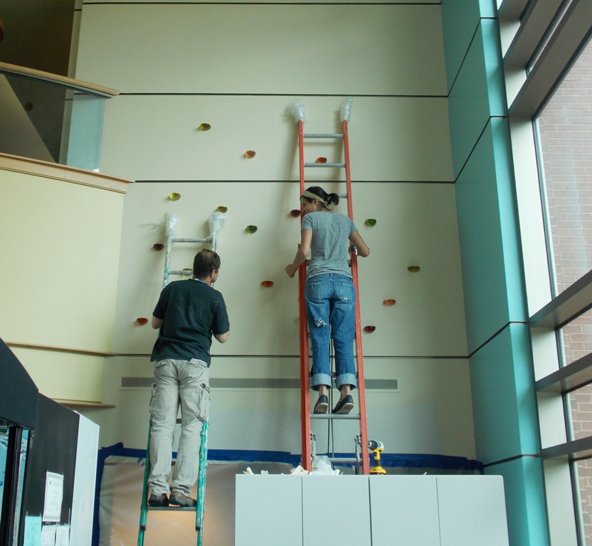 | Erwin Timmers and Audrey Wilson install Kaiser Pemanente’s newest artwork. |