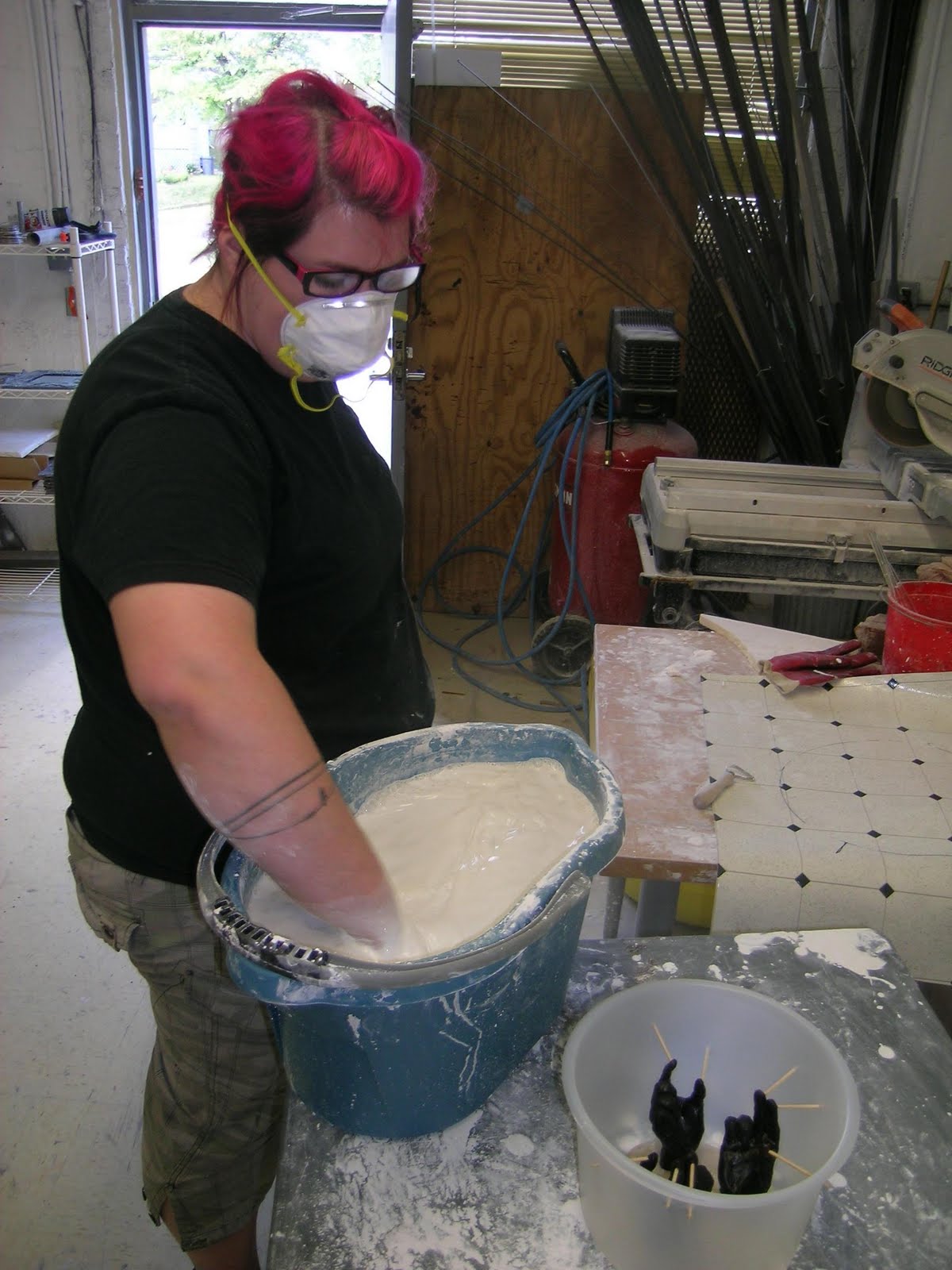 Nicole coordinated many art projects while working in the Washington Glass Studio. Here, Nicole is cleaning a just annealed glass casting that was part of the Vanderbilt University Critical Care Tower.