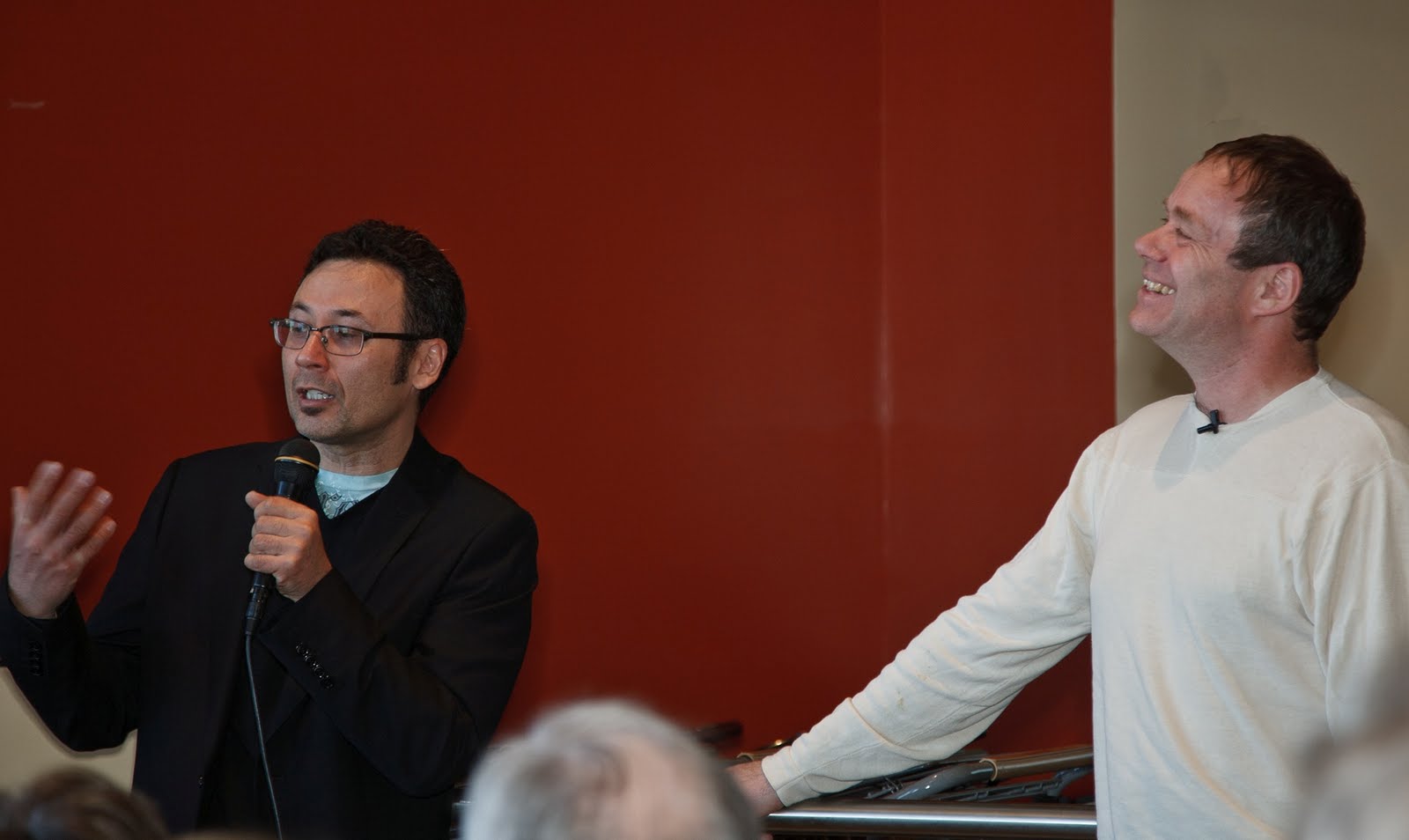 The James Renwick Alliance (JRA) is dedicated to advancing scholarship and education on contemporary American craft and to encouraging connoisseurship and collecting. The Alliance assists the Smithsonian American Art Museum’s Renwick Gallery in adding to its permanent collection of American craft, supports scholarly research in contemporary American craft and pursues other activities in support of the studio craft movement. As part if this goal, the JRA held a talk on the process and inspirations that made up Washington Glass Studio’s recently completed Safeway Bethesda public art project. The talk was much more popular than the organizers had anticipated, as there was standing room only. Readers of the Glass School blog are familiar with the development of the project. Here are some shots of the event – photos by Miriam Rosenthal of ThirdEyePhotography.
