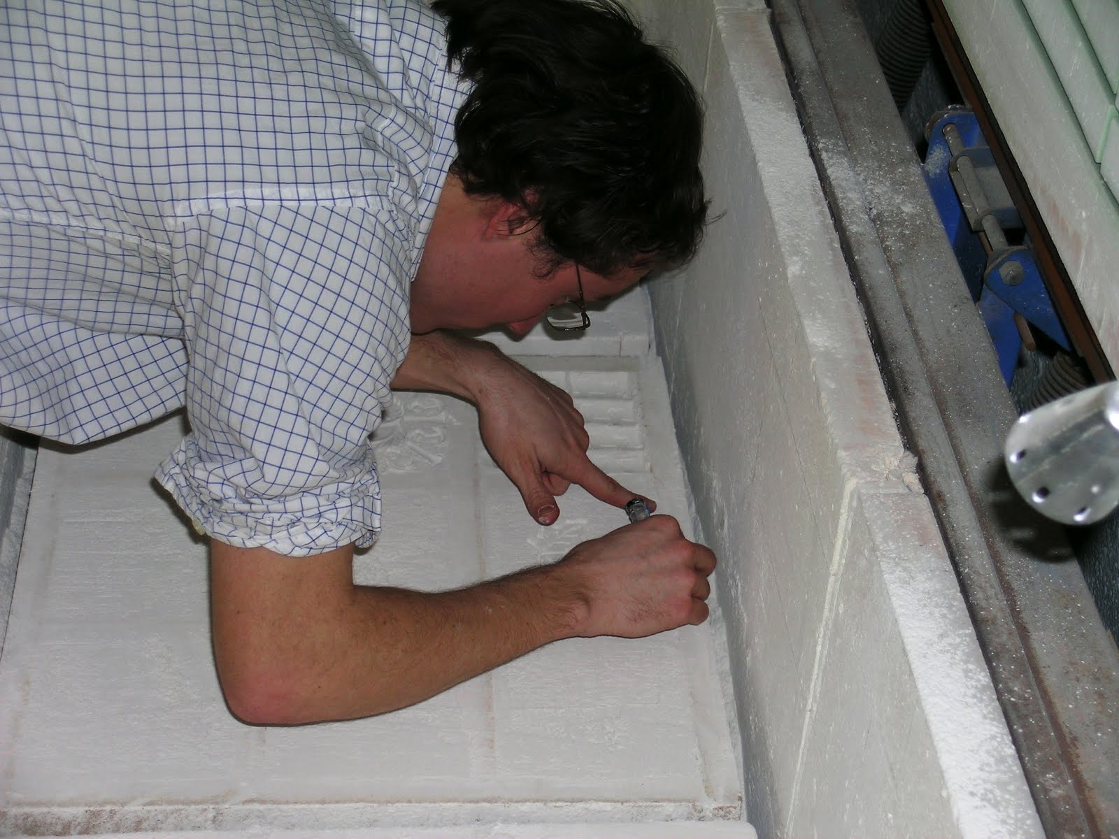 A Georgetown medical student gets to practice his surgical precision with moldmaking in the kiln. Just like the game of Operation, a steady hand is requisite.