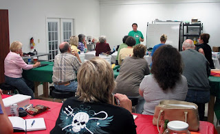 | Michael Janis outlines frit powder sgraffito process to the class. |