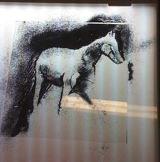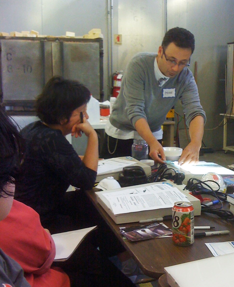 Michael’s workshops were about integrating imagery into glass – one workshop was creating deep bas-relief and in the other workshop he taught how he does his unique frit powder drawing technique.