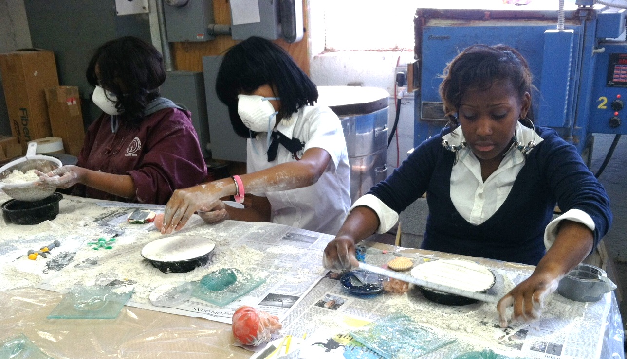 The SEED school of Washington DC is a public charter boarding school whose mission is “to provide an outstanding intensive educational program that prepares children … for success in college.” This past week, students from the school came to the Washington Glass School for a one-day hands-on class that mixed art, history, chemistry, mathematics and physics.