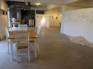 Flux Studios is a 3000 square foot arts space in the Gateway Arts District that houses the studios of six professional artists. Each individual studio has ten-foot ceilings, concrete floors and walls of finished drywall over plywood. The studio offers a friendly and collaborative atmosphere, 24 hour access, free on-site parking, a large flexible common area available to all members for projects, installations or teaching, an exhibition area with gallery lighting, a computer controlled studio kiln available for rent and a loading dock with garage doors.