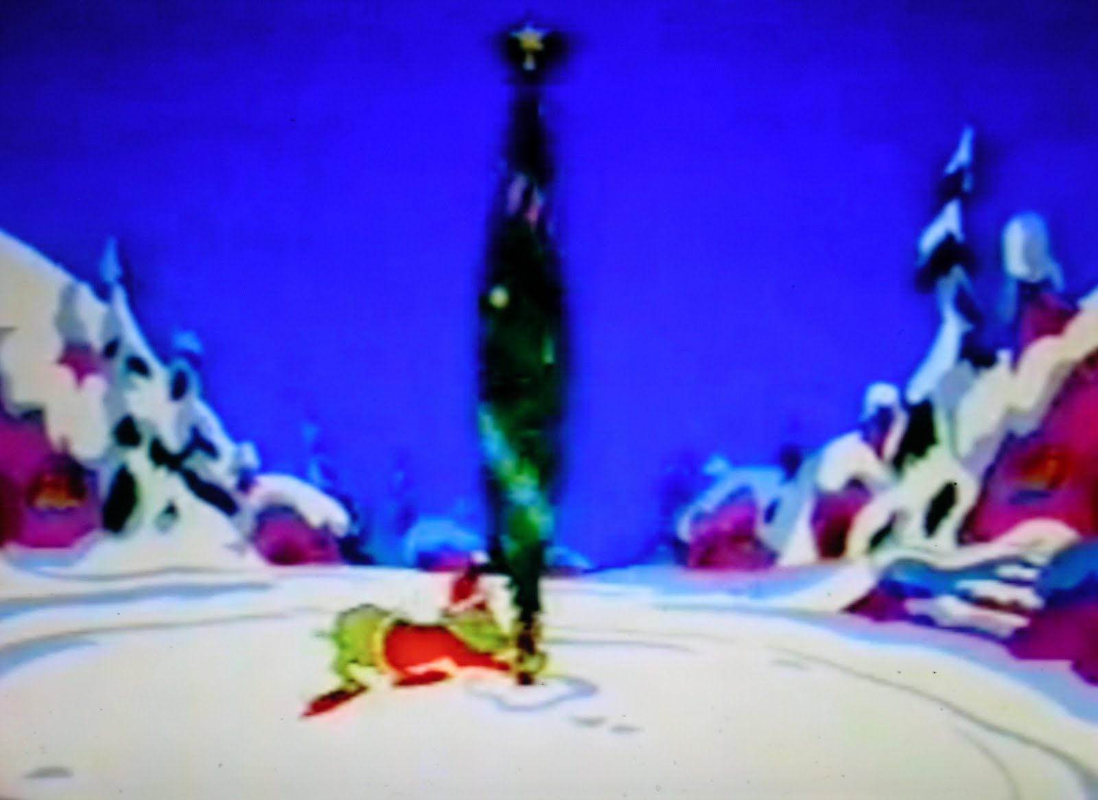 A waggish designer commented that ribs that made up the steel support framework for the glass resembled an umbrella, and due to the tapered form, alternately to an upside down Christmas tree. Soon the artwork was compared to a scene from the 1966 animated Chuck Jones “How The Grinch Stole Christmas” television special where both a Christmas tree and umbrella are combined.